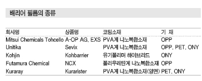 이밖에 MXD6/PA6 나일론계 공압출 필름은 Unitika, Toyobo, Kurilon Chemicals 등이 판매하고 있다.