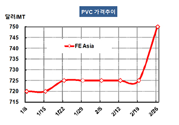 화학뉴스 2016.02.29 PVC(Polyvinyl Chloride)는 오랜만에 급등세로 전환됐다.