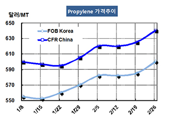 FOB Korea 600달러로 15달러 올라 … 3월 초 PDH 60만톤 가동