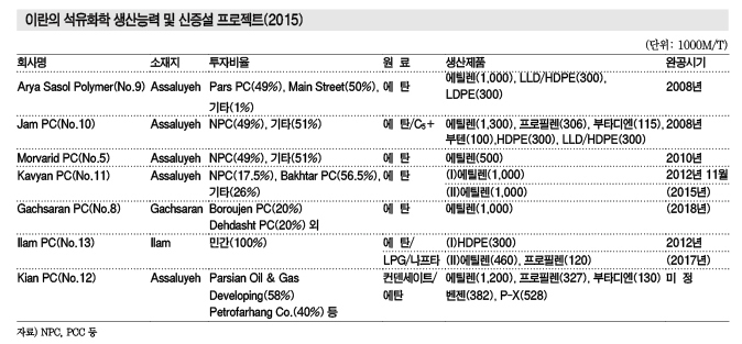 이란은 2014년 기준 가스 매장량 세계 1위, 석유 매장량 4위인 자원대국으로 자리 잡고 있으며 인구도 걸프연안 산유국 가운데 최대인 7810만명에 달해 석유화학 시장의 급성장이 확실시되고 있다.