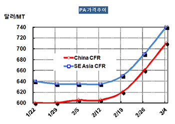 PA, CFR China 710달러로 50달러 폭등 … 원료가격 상승도 견인