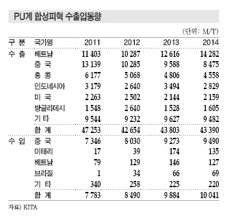 시장 관계자는 “인도네시아, 중국, 베트남에도 합성피혁 공장이 존재하나 국내기업만큼 글로벌 스포츠 브랜드의 생산량을 충당할 수 있는 생산능력을 보유하고 있지 않다”며 “하지만, 현지기업들도 점차 대규모화되고 있어 스포츠 신발용 합성피혁은 마진이 계속 감소하고 있다”고 밝혔다.