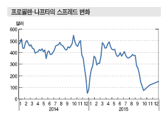 프로필렌 생산기업들은 2015년 나프타와의 스프레드가 톤당 평균 250달러 수준에 머물 것으로 예상했으나 2015년 상반기에는 평균 380달러로 2014년과 비슷했기 때문이다.