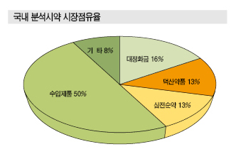 시장 관계자는 “범용 그레이드는 국산으로 전환이 가능하나 정부기관들의 국산화 노력이 부족하다”며 “정부기관이 국산화 노력에 앞장서야 시약 국산화가 활성화될 것”이라고 강조했다.