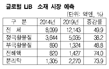 Fuji경제연구소, 2019년 LiB 시장규모 1.2조엔 … 2016년 본격 납품