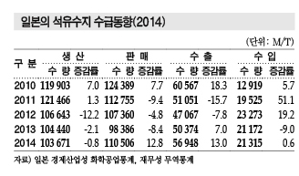 트래픽 페인트 등 대지진 복구 관련 수요도 성장할 것으로 예상됐으나 2014년에는 늘어나지 않았던 것으로 나타났다.