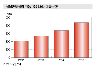 서울반도체는 자동차용 LED 매출액이 2012년 620억원에서 2013년 810억원, 2014년 1000억원 수준으로 고성장을 지속하고 있다.