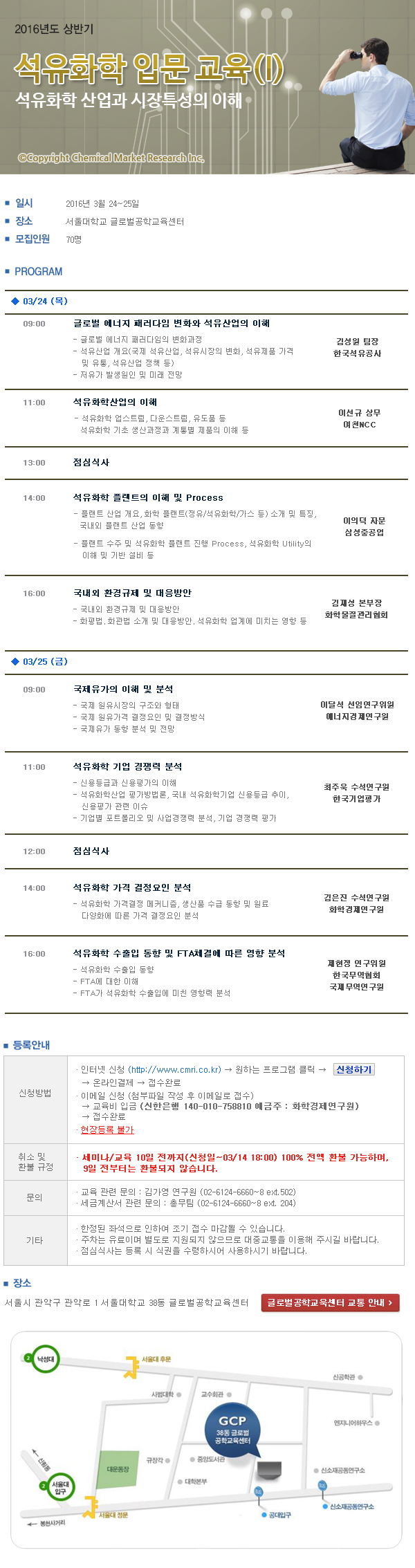 행사명 | 석유화학 입문 교육(I) - 석유화학 산업과 시장특성의 이해 ![]() |